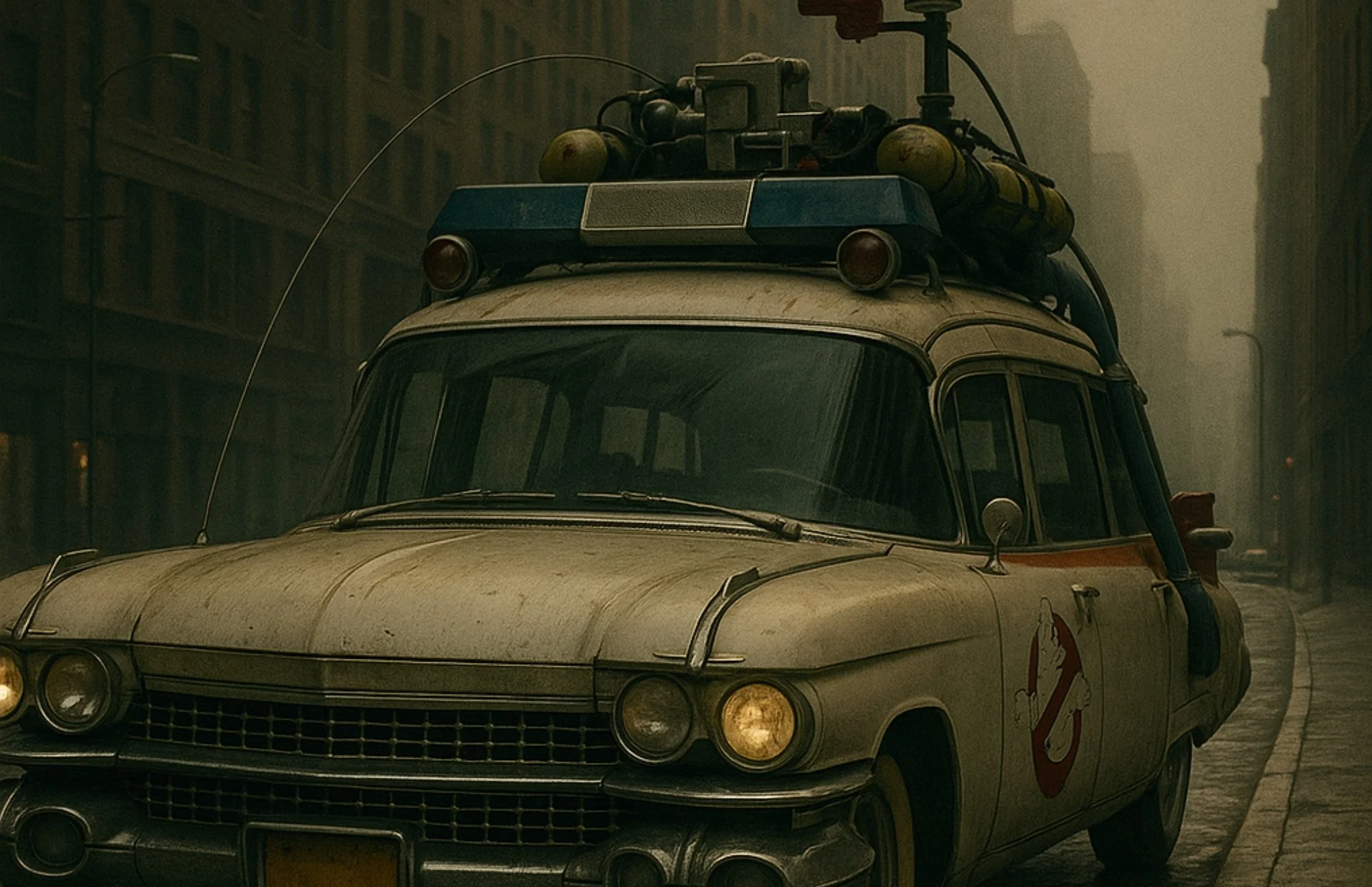 Behind the Scenes: “Who ya gonna call?” Ecto-1 began life as a real 1959 Cadillac Miller-Meteor ambulance/hearse, which the filmmakers transformed into the Ghostbusters’ iconic ride. At nearly 20 feet long and 3 tons in weight, it was unwieldy to drive. Imagine taking those tight turns in what is essentially a small bus! Dan Aykroyd and Harold Ramis originally envisioned the car being black with purple strobe lights and supernatural abilities (able to dematerialize and travel between dimensions), giving it a spooky aura. They ultimately changed it to the now-familiar white paint scheme – a practical decision because many scenes were filmed at night, and a black car wouldn’t show up well on camera.