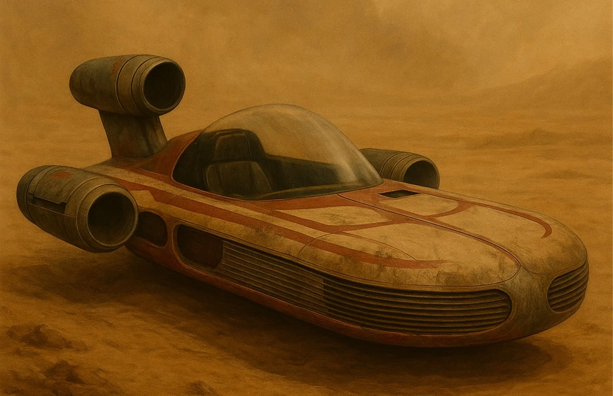 Behind the Scenes: Luke Skywalker’s Landspeeder in Star Wars: A New Hope (1977) wasn’t really levitating – it was a clever illusion. The prop speeder was built on the chassis of a small three-wheeled car (a Bond Bug), which could drive in the desert. To make it appear to hover, the film crew mounted angled mirrors along the sides of the speeder to reflect the ground and hide the wheels. In wide shots, they even smeared Vaseline on the camera lens near the bottom to blur the area where wheels might be seen. This low-tech trick fooled our eyes, making the Landspeeder look like it was floating above the sands of Tatooine – an ingenious example of practical effects before CGI.